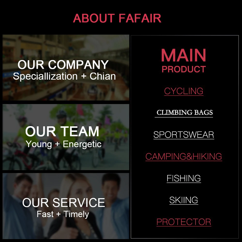 Applicable scenes: cycling sports, ice and snow sports, hiking and camping, shooting sports, foot and volleyball sports, sports outdoor bags, fishing sports, table tennis, tennis, swimming and wading