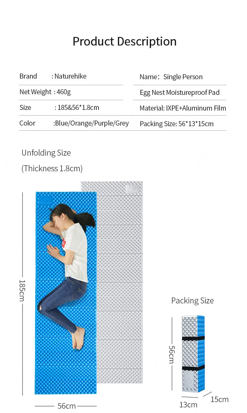 Naturehike 420g Portable Camping Pad Folding Thicken Single Mat Tent Hiking Mat Outdoor Camping Lunch Break Leisure Mat